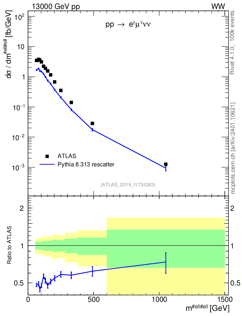 Lines: data, pythia8 8.313 rescatter |
