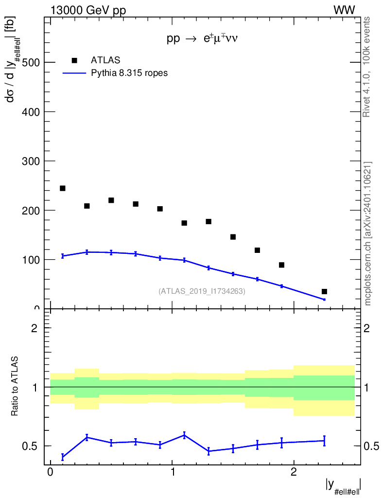 Lines: data, pythia8 8.315 ropes |