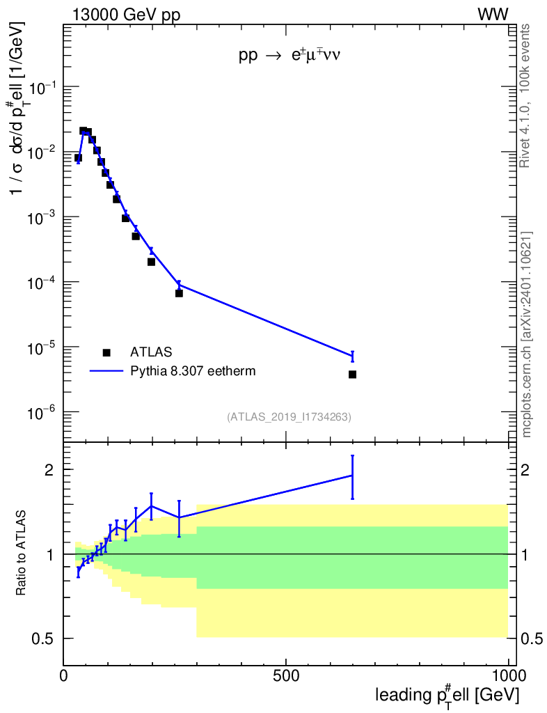 Lines: data, pythia8 8.307 eetherm |