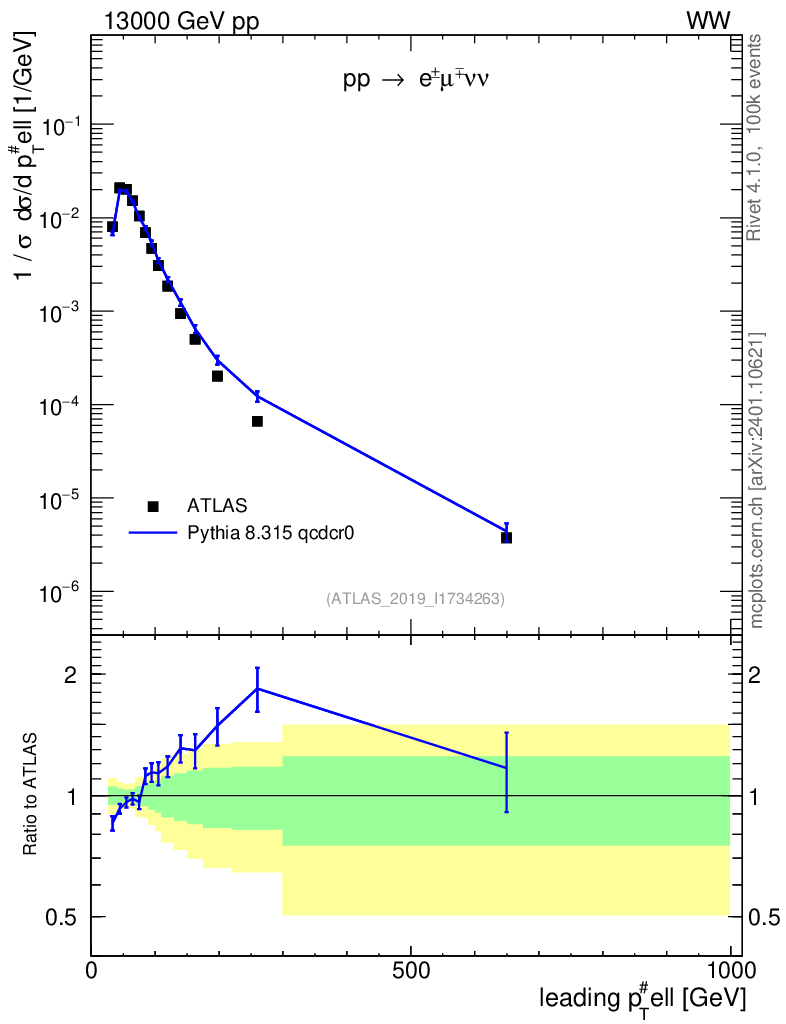 Lines: data, pythia8 8.315 qcdcr0 |