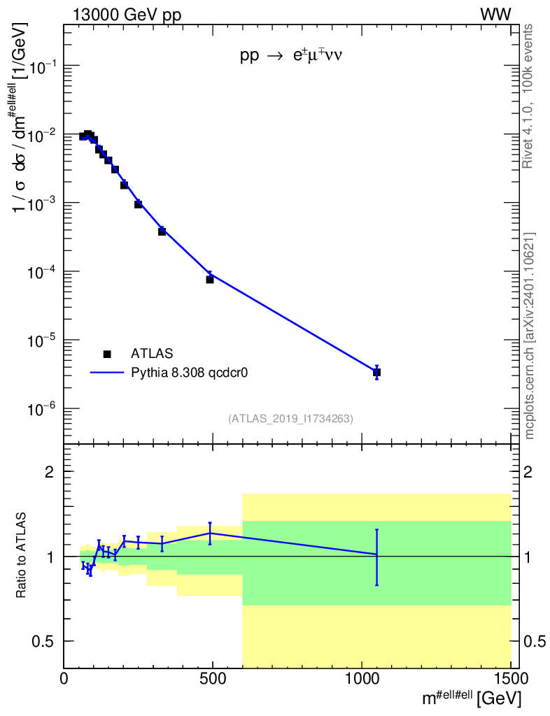 Lines: data, pythia8 8.308 qcdcr0 |