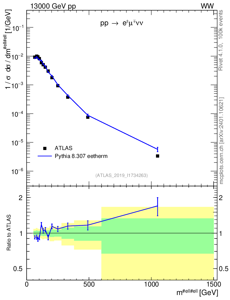 Lines: data, pythia8 8.307 eetherm |