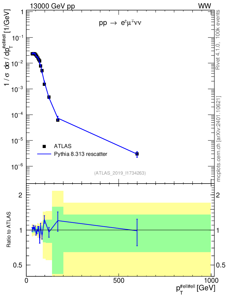 Lines: data, pythia8 8.313 rescatter |