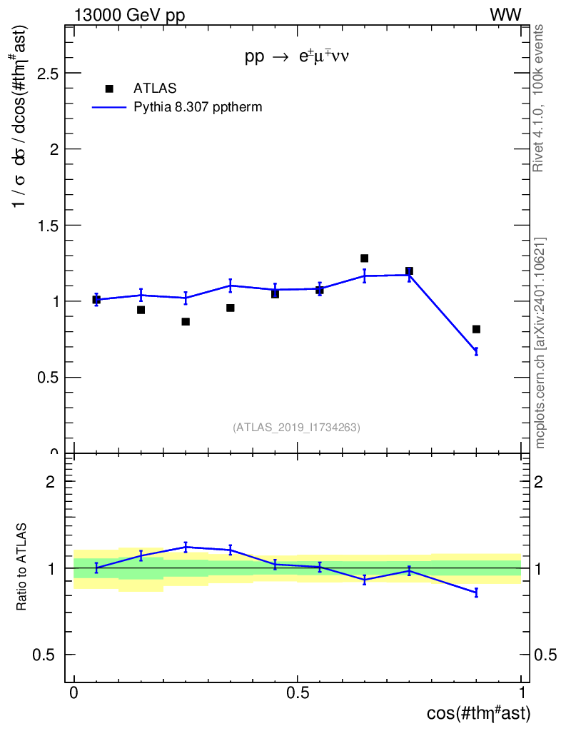 Lines: data, pythia8 8.307 pptherm |