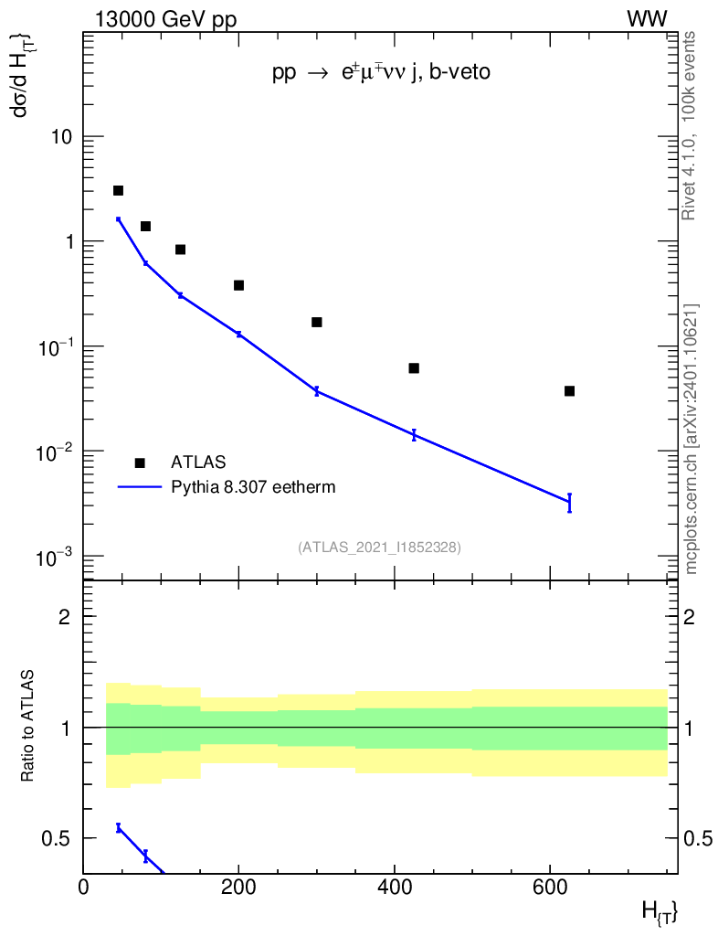 Lines: data, pythia8 8.307 eetherm |