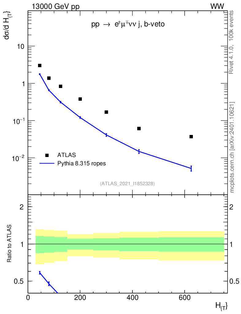 Lines: data, pythia8 8.315 ropes |