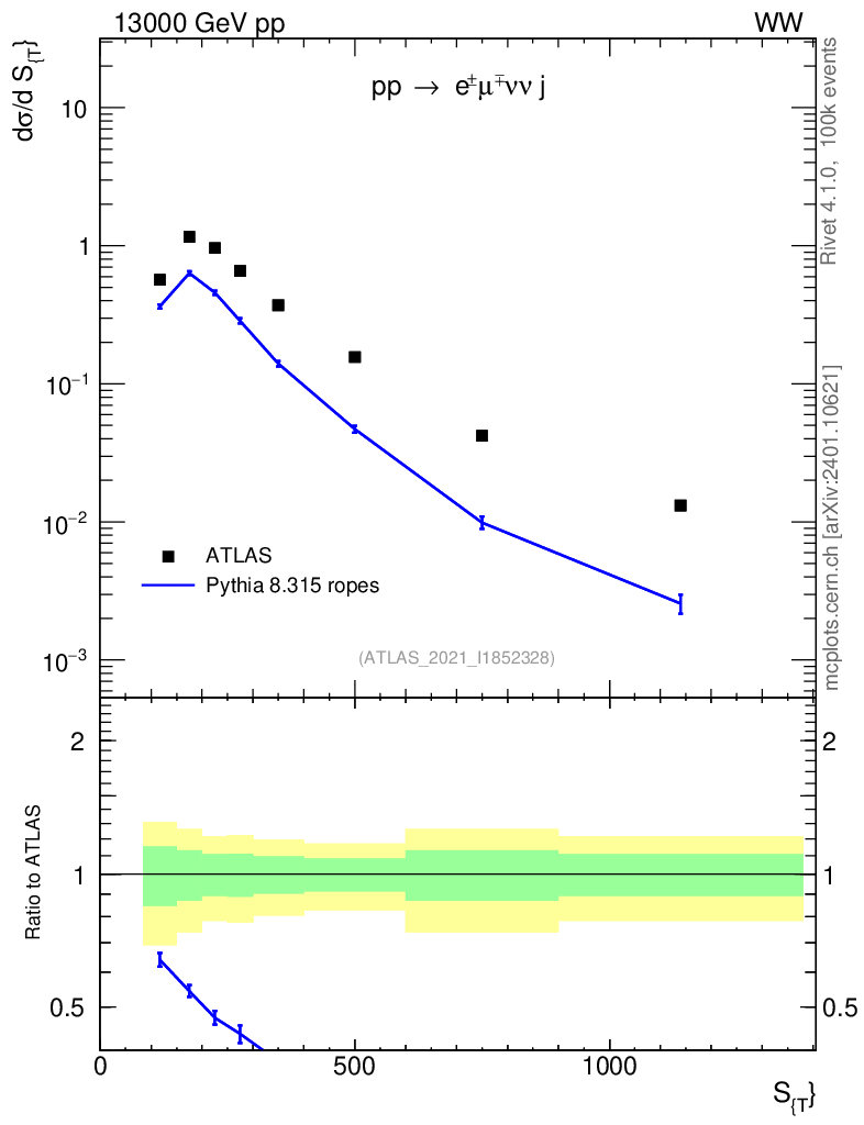Lines: data, pythia8 8.315 ropes |