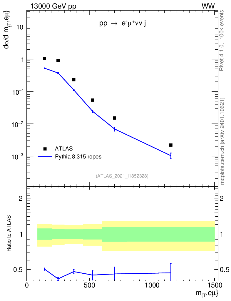 Lines: data, pythia8 8.315 ropes |