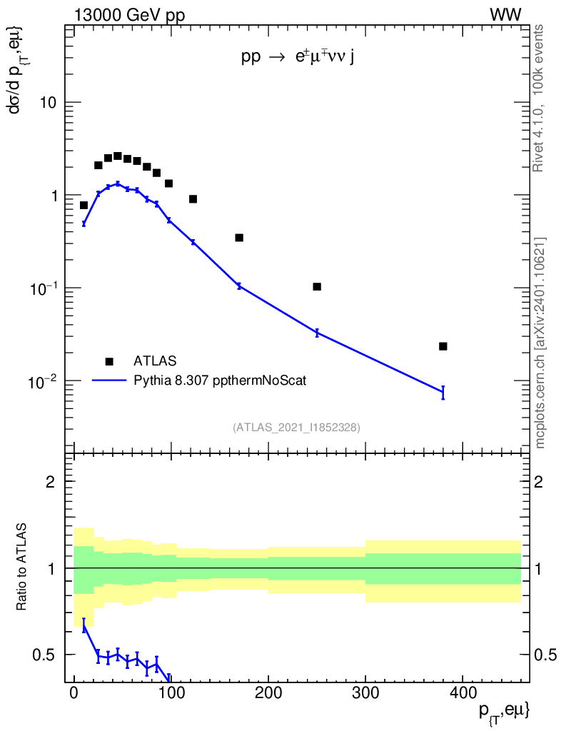 Lines: data, pythia8 8.307 ppthermNoScat |