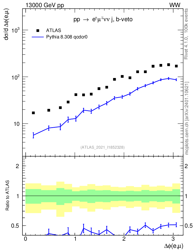 Lines: data, pythia8 8.308 qcdcr0 |