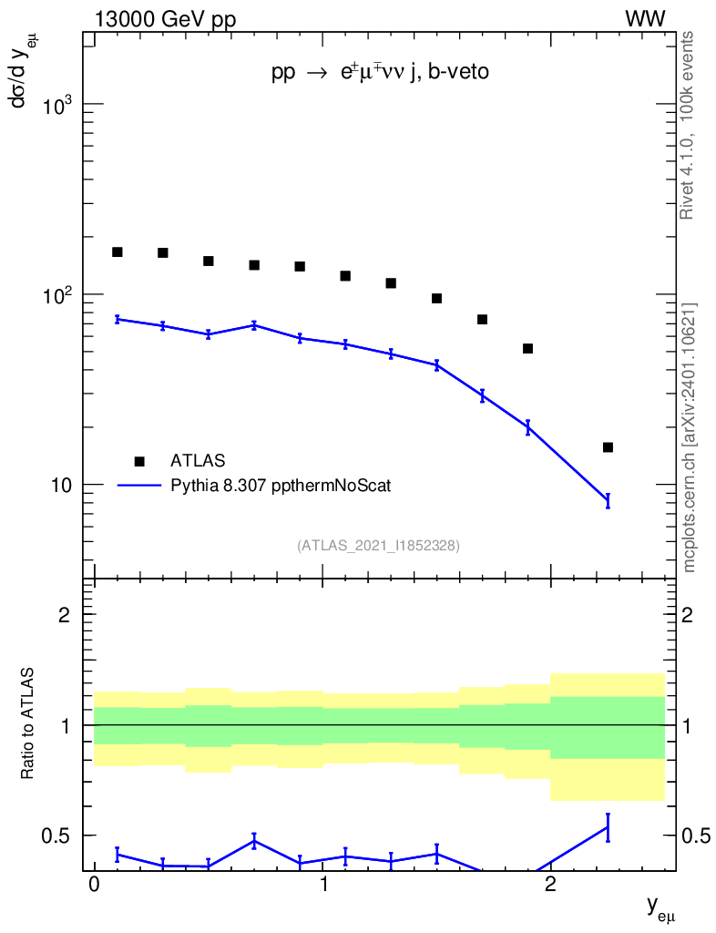 Lines: data, pythia8 8.307 ppthermNoScat |