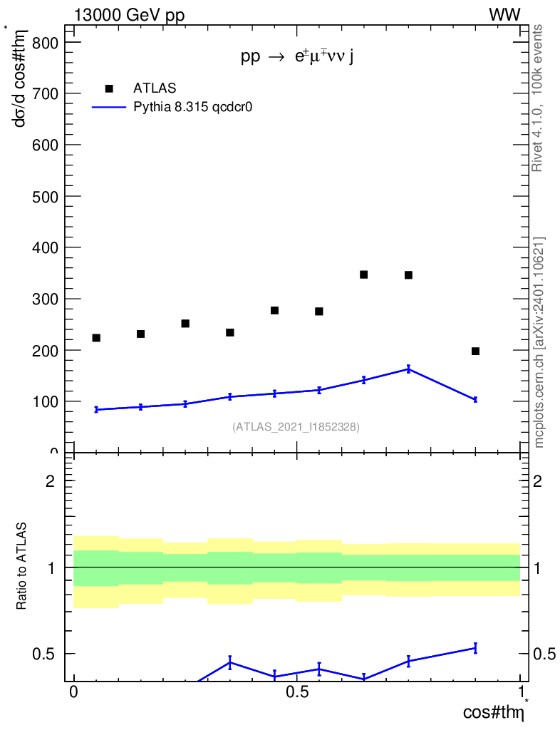 Lines: data, pythia8 8.315 qcdcr0 |