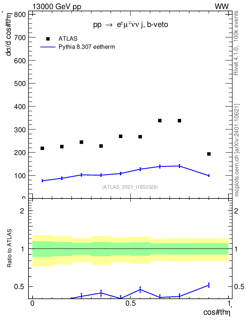 Lines: data, pythia8 8.307 eetherm |