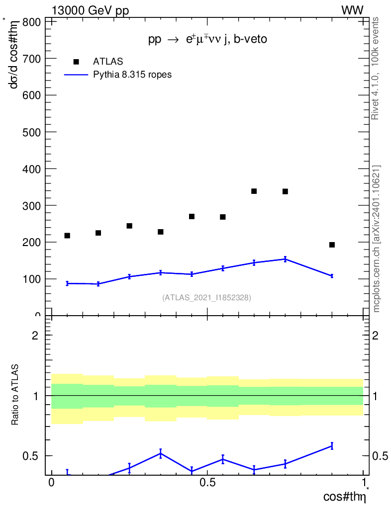 Lines: data, pythia8 8.315 ropes |