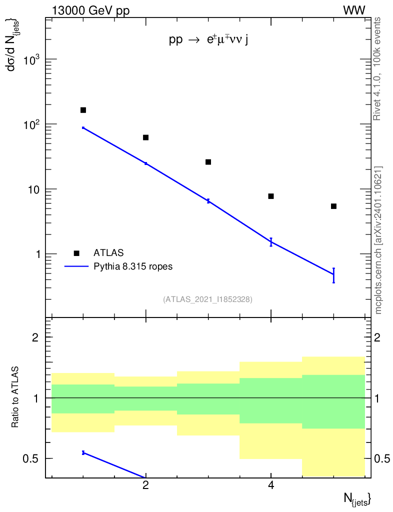 Lines: data, pythia8 8.315 ropes |