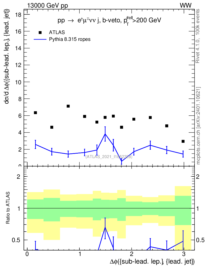 Lines: data, pythia8 8.315 ropes |
