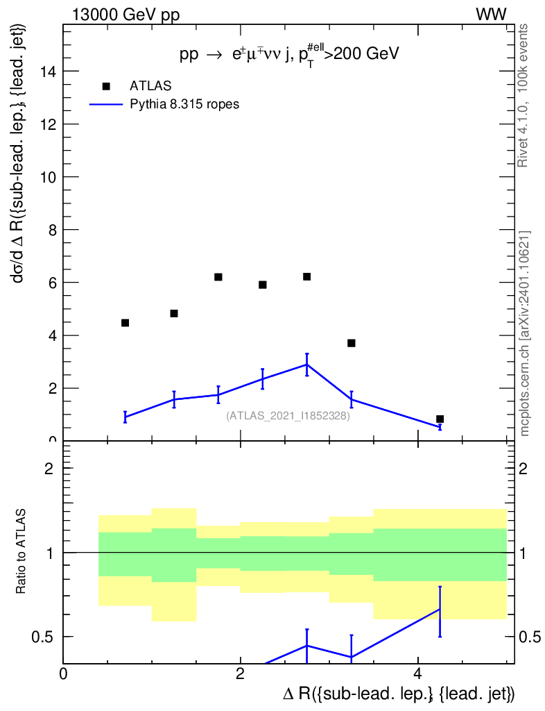 Lines: data, pythia8 8.315 ropes |