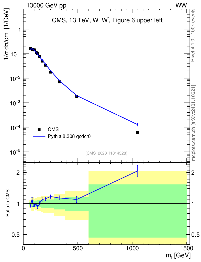 Lines: data, pythia8 8.308 qcdcr0 |
