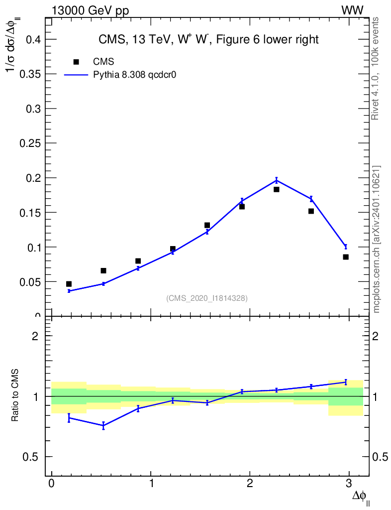 Lines: data, pythia8 8.308 qcdcr0 |