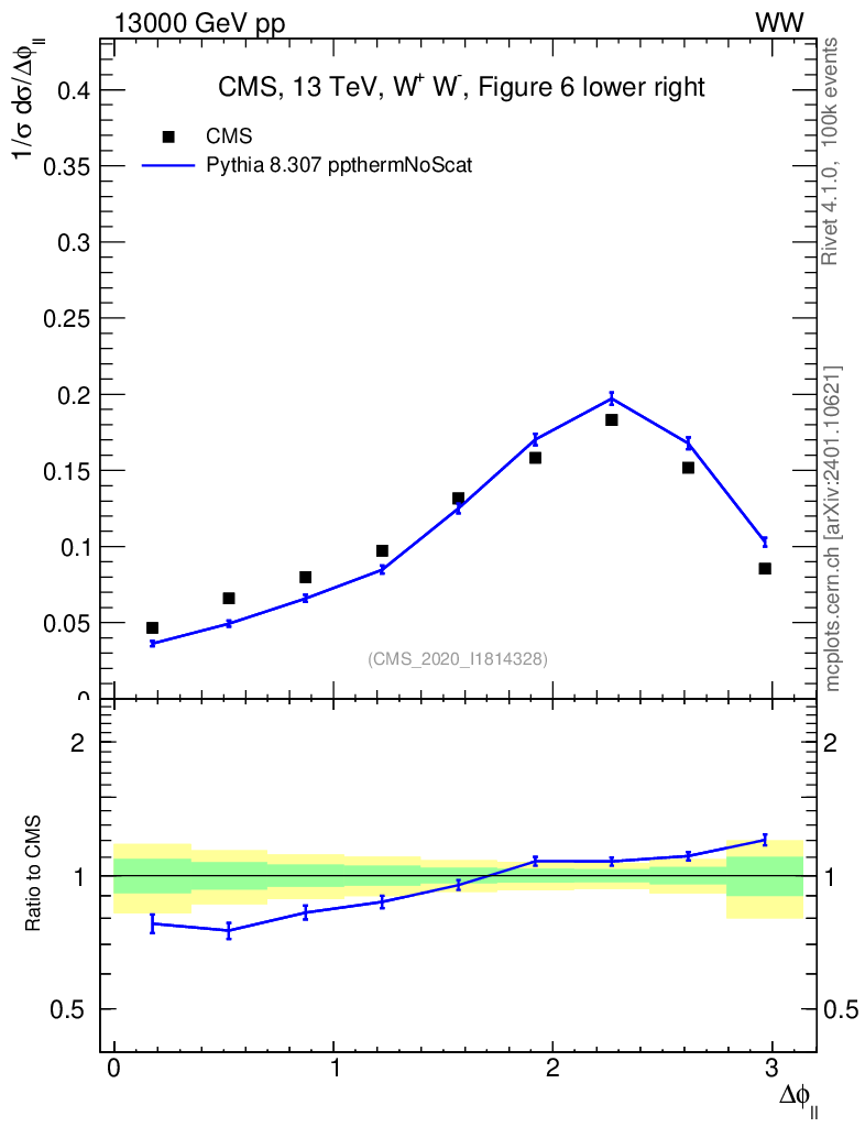 Lines: data, pythia8 8.307 ppthermNoScat |
