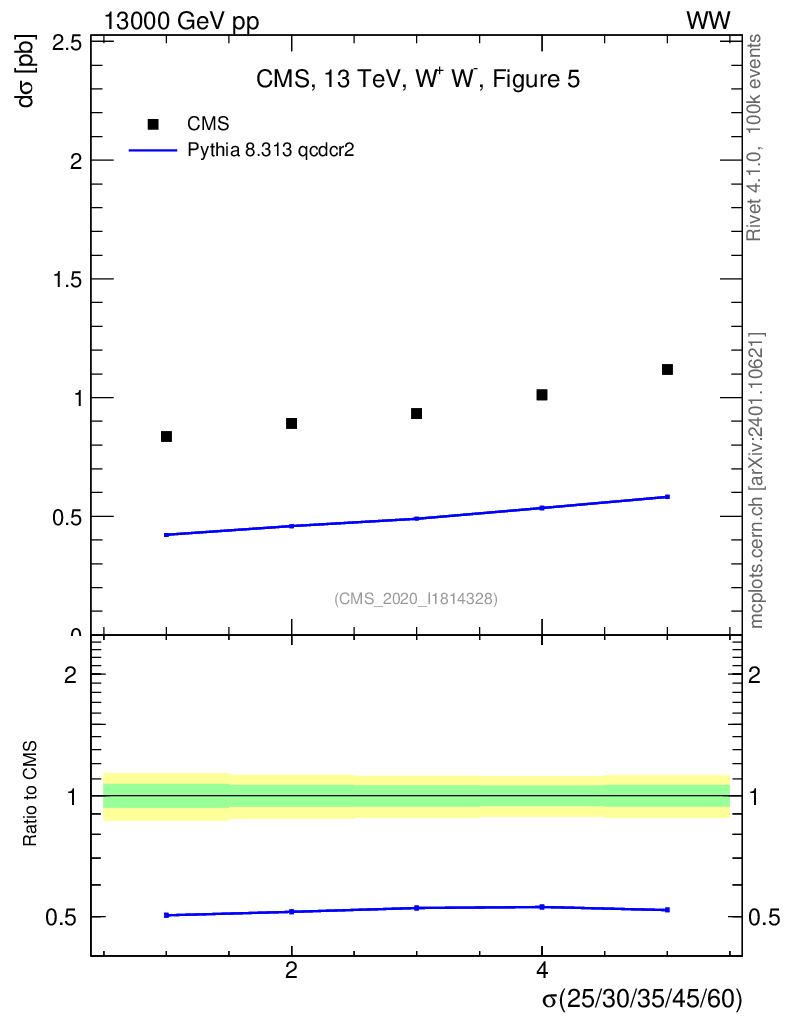 Lines: data, pythia8 8.313 qcdcr2 |