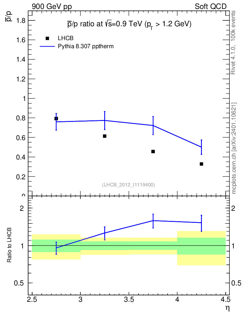 Lines: data, pythia8 8.307 pptherm |