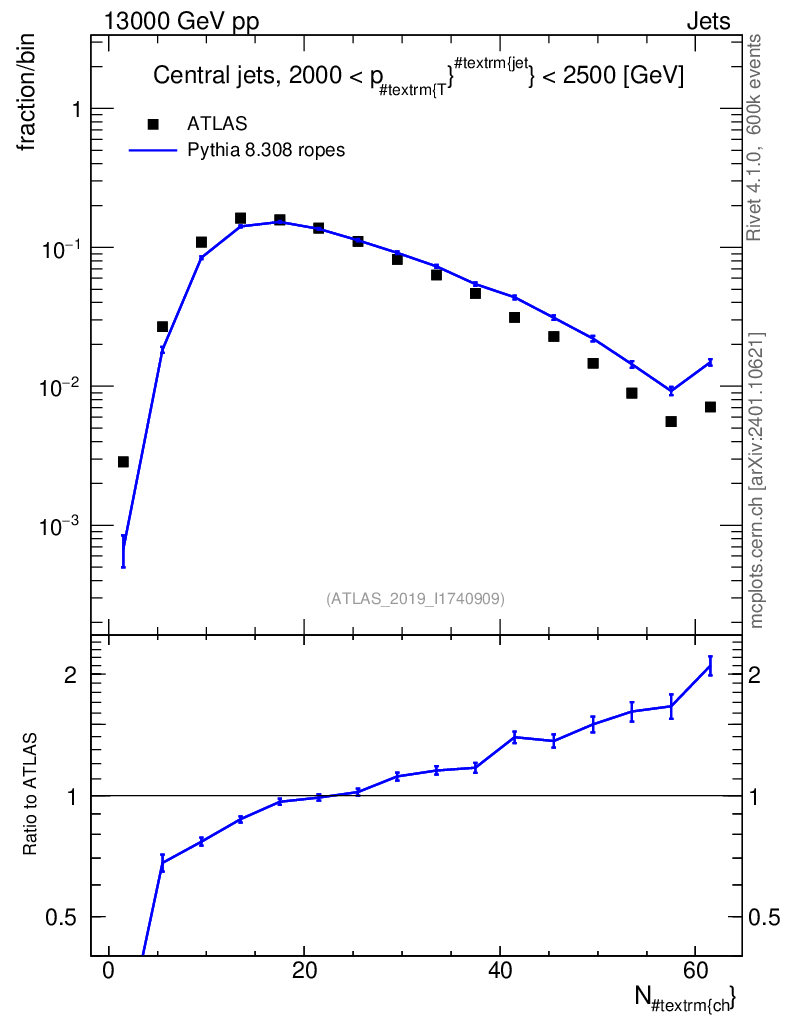 Lines: data, pythia8 8.308 ropes |