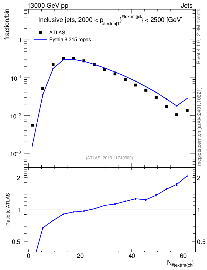 Lines: data, pythia8 8.315 ropes |