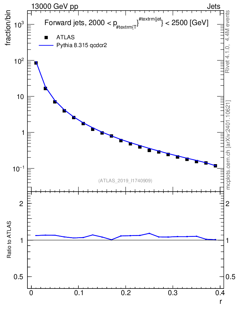 Lines: data, pythia8 8.315 qcdcr2 |