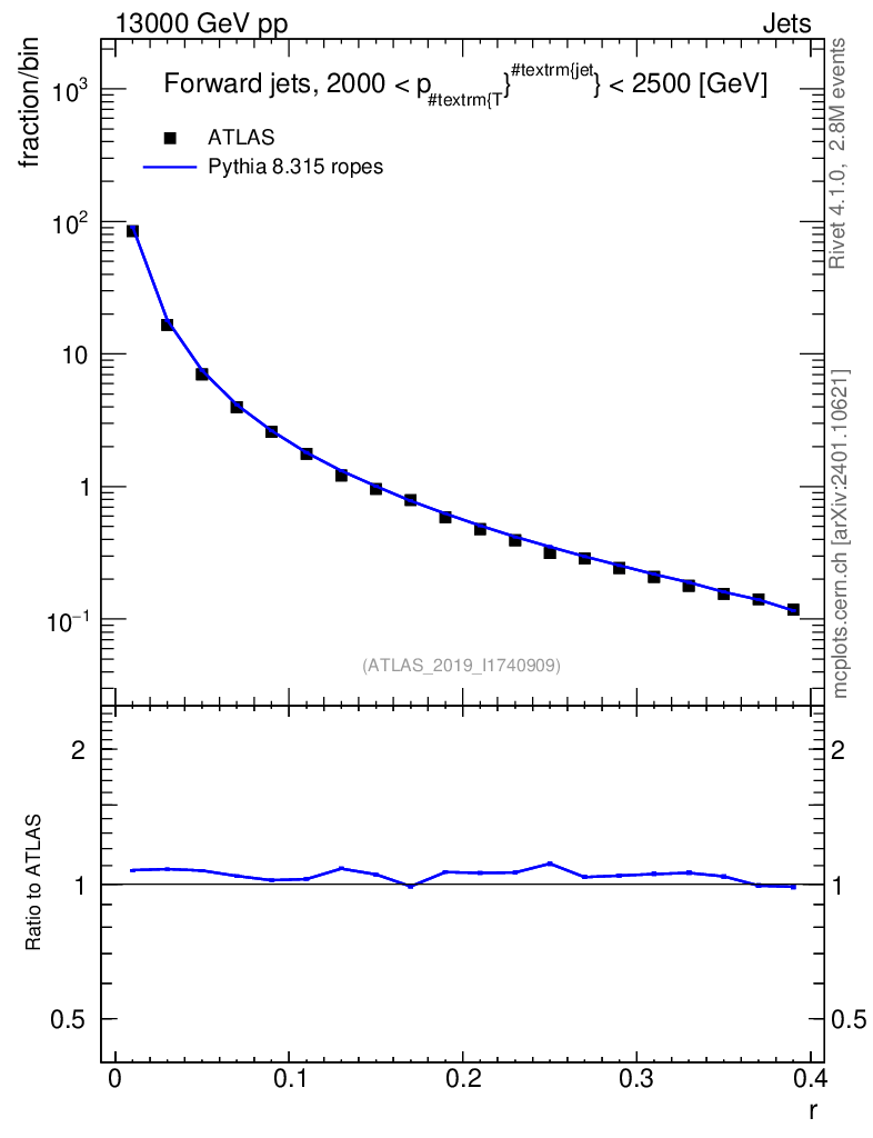 Lines: data, pythia8 8.315 ropes |