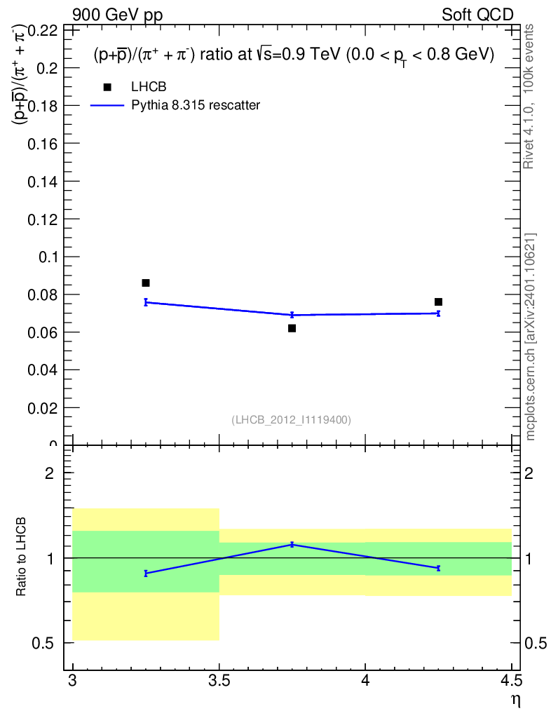 Lines: data, pythia8 8.315 rescatter |