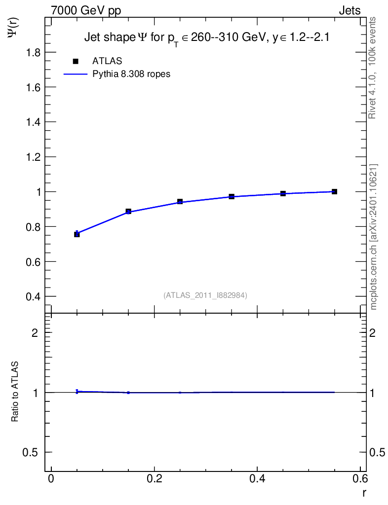 Lines: data, pythia8 8.308 ropes |