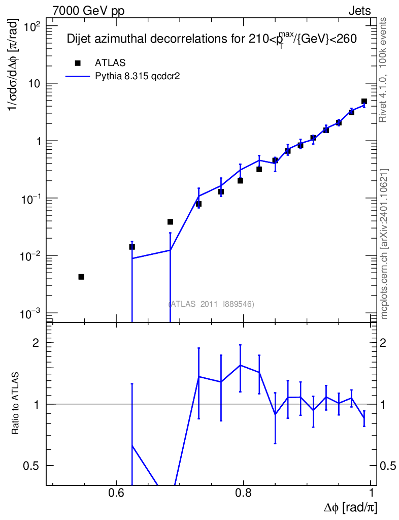 Lines: data, pythia8 8.315 qcdcr2 |