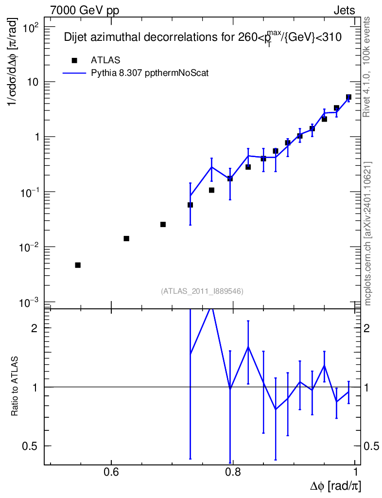 Lines: data, pythia8 8.307 ppthermNoScat |