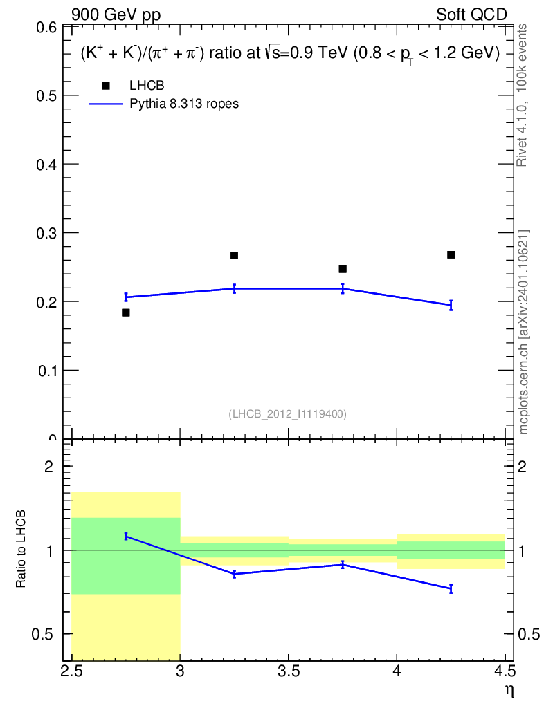 Lines: data, pythia8 8.313 ropes |