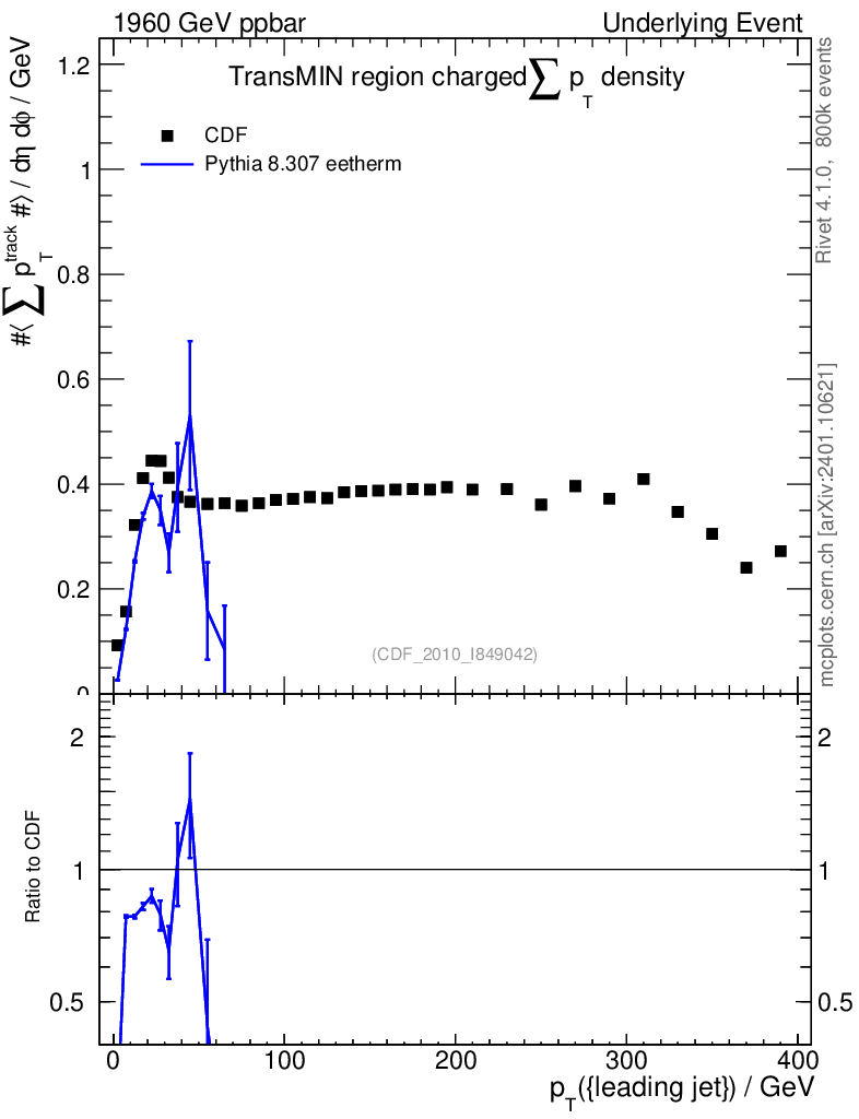 Lines: data, pythia8 8.307 eetherm |