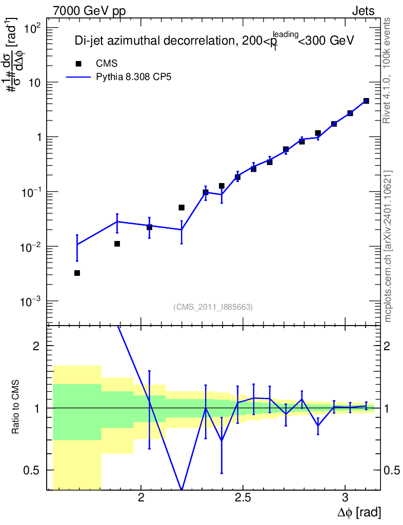 Lines: data, pythia8 8.308 CP5 |