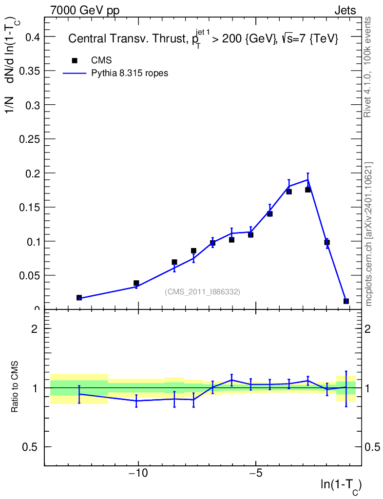 Lines: data, pythia8 8.315 ropes |