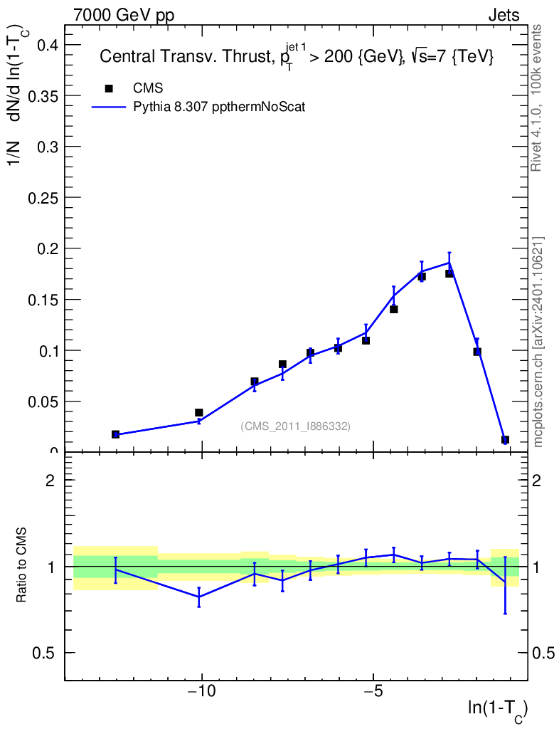 Lines: data, pythia8 8.307 ppthermNoScat |
