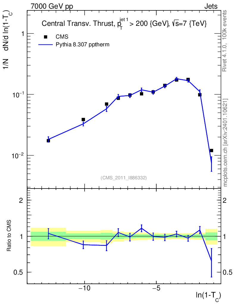 Lines: data, pythia8 8.307 pptherm |