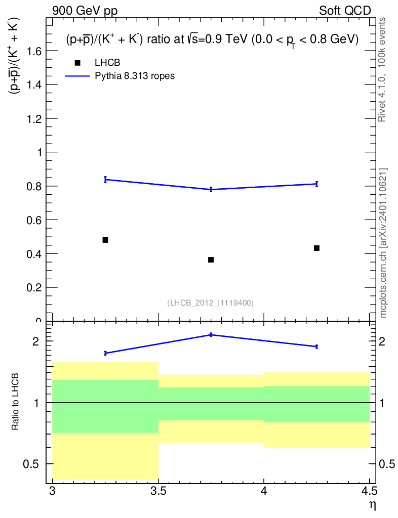 Lines: data, pythia8 8.313 ropes |