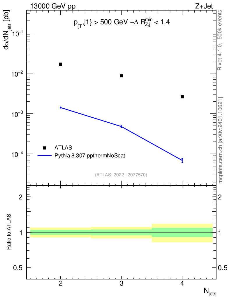 Lines: data, pythia8 8.307 ppthermNoScat |