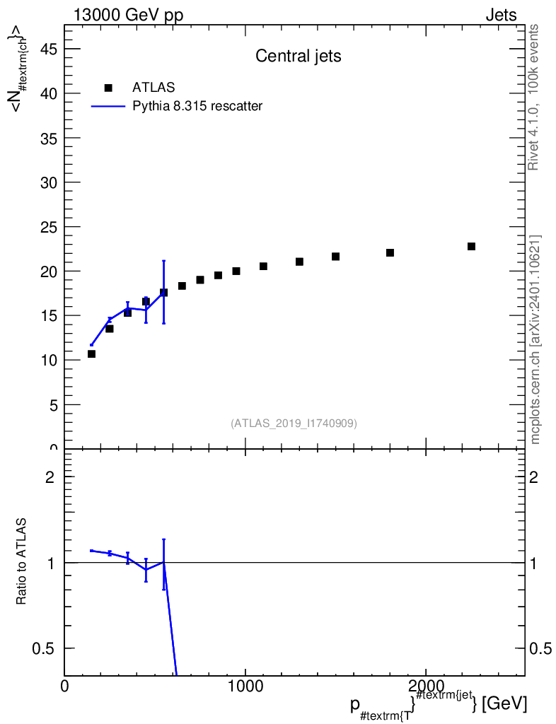 Lines: data, pythia8 8.315 rescatter |