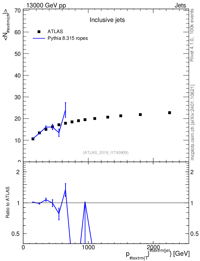 Lines: data, pythia8 8.315 ropes |