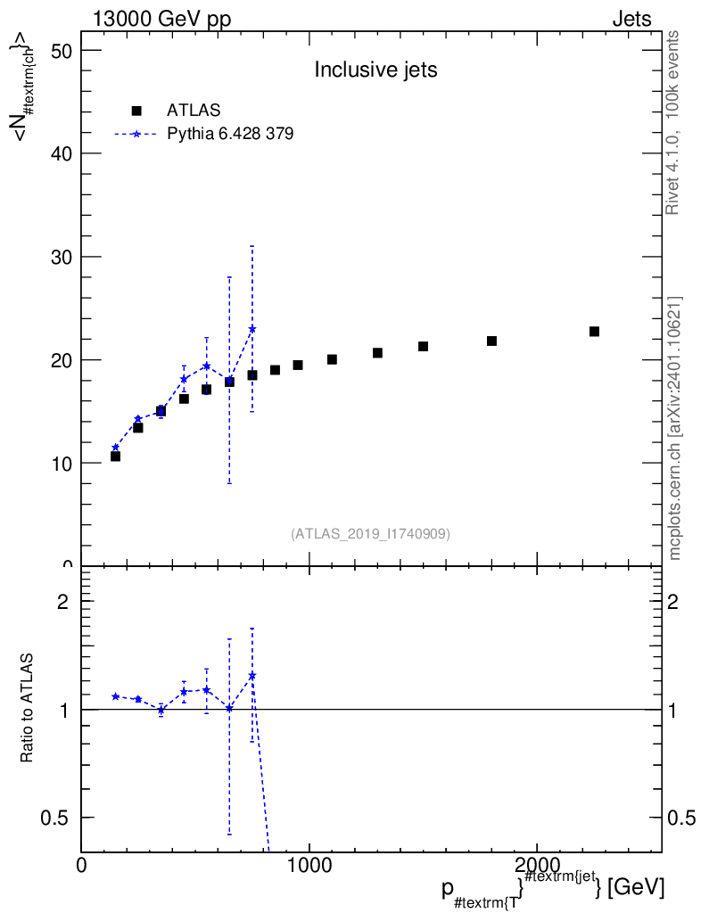 Lines: data, pythia6 6.428 379 |