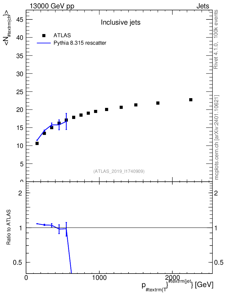 Lines: data, pythia8 8.315 rescatter |