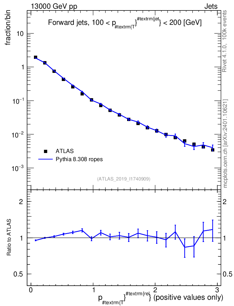 Lines: data, pythia8 8.308 ropes |