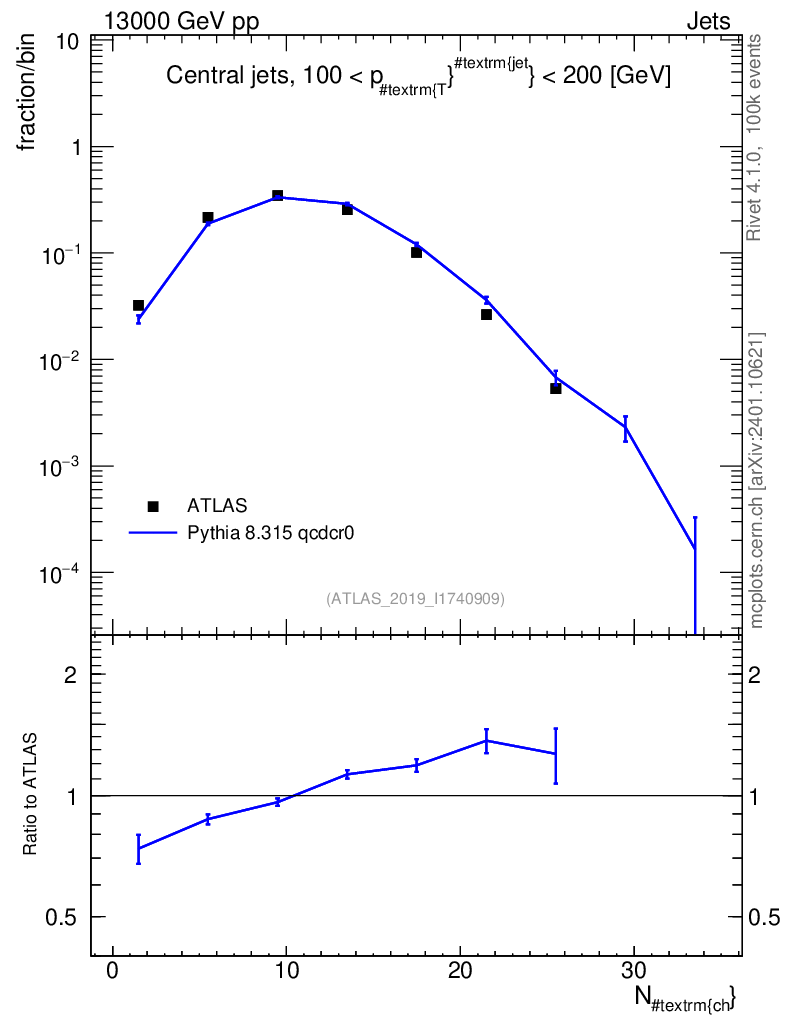 Lines: data, pythia8 8.315 qcdcr0 |