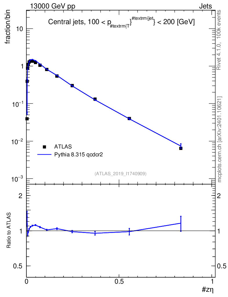 Lines: data, pythia8 8.315 qcdcr2 |