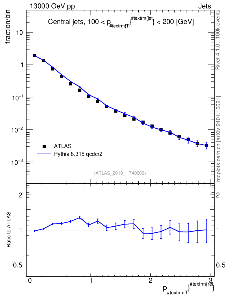 Lines: data, pythia8 8.315 qcdcr2 |